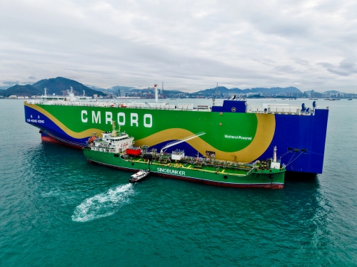 3月5日,香港航运业迎来绿色转型重要里程碑。中远海运集团旗下中石化中海燃供联合中石化香港、招商滚装,顺利完成香港首单绿色甲醇加注作业,标志着香港正式迈入航运绿色替代燃料加注新阶段。 本次绿色甲醇加注作业也是全国首次锚地加注绿色甲醇,由中石化中海燃供自主运营的国内首艘甲醇双燃料动力油化两用加注船“大庆268”轮全程执行,展现出在绿色航运发展上央企多方协同的实力,契合香港特区政府的充分规划,并为未来常态化开展内地与港澳之间的绿色甲醇加注业务奠定了良好基础。 “大庆268”轮技术性能先进,装备自主可控。其核心动力系统100%国产化,采用甲醇与传统燃料双燃料动力系统,全长109.9米,载重7500吨,总舱容10362立方米,可运输及加注甲醇、生物柴油、燃料油等多种清洁能源产品,能满足多批次、多标准加注需求,同时具备港澳航线合法运营资质,是连接粤港澳大湾区各城市的绿色航运服务关键纽带。 香港首单是节点,更是起点。中远海运锚定绿色低碳,统筹布局,落子有声,助力大湾区推进绿色航运服务网络建设,为航运业注入绿色动能。