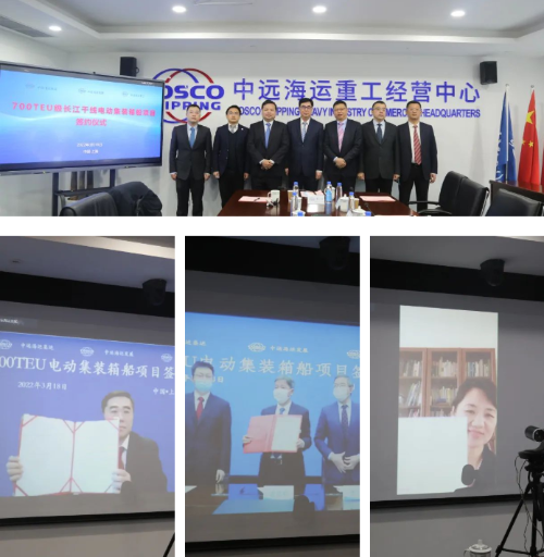 3月18日,中远海运集团2艘700TEU级长江干线电动集装箱船项目举行“云签约”仪式,51家企事业合作单位连线见证中远海发航租事业部与扬州中远海运重工、上海泛亚航运分别云签署700TEU级电动集装箱船舶建造协议和船舶租赁协议,共同推动长江航运绿色零碳转型。